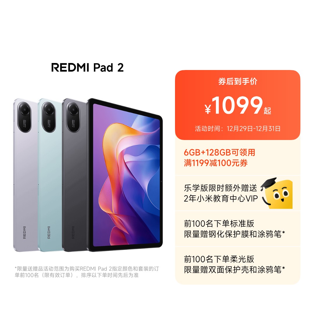 REDMI Pad 2 紫色平板+淡黄色涂鸦触控笔套装 6G 128G
