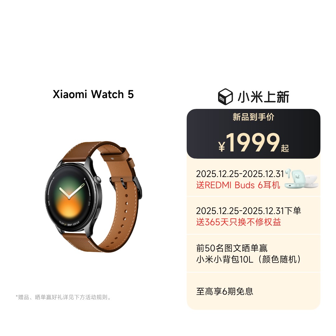 Xiaomi Watch 5【蓝牙版】黑色氟胶表带款
