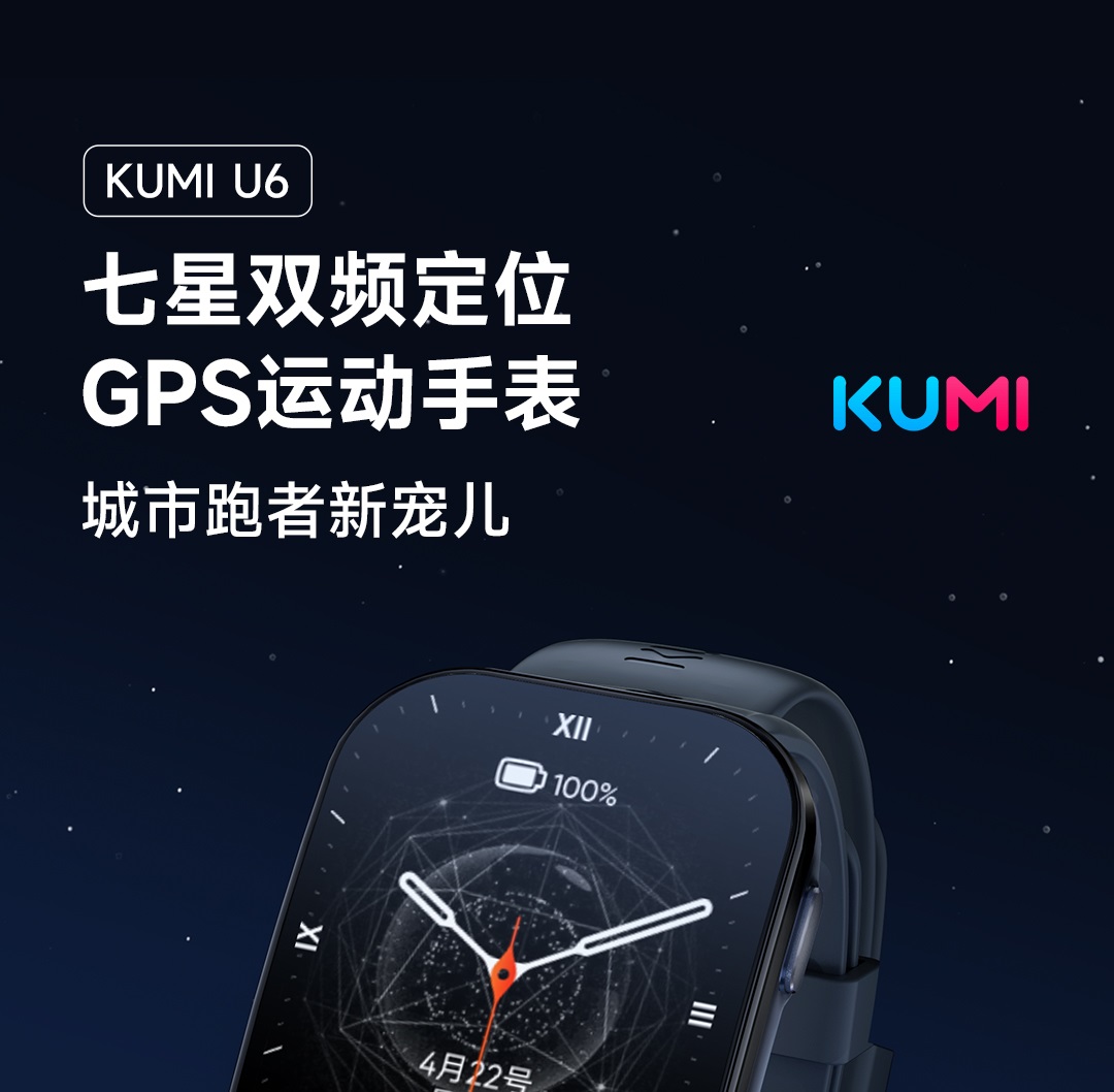 KUMI库觅 U6智能手表七星定位双频GPS运动蓝牙通话手表 运动款 灰色